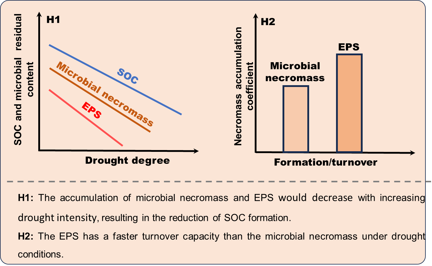 图1 不同干旱程度下微生物残体和胞外聚合物对土壤有机碳形成与周转能力调控机制的假设