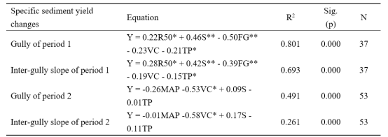 表1. 退耕还林前后两个时段沟道及沟间坡产沙量变化的多变量线性回归分析