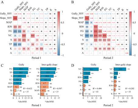 图5. 小流域产沙量影响因子的相关性热图及随机森林重要性排序