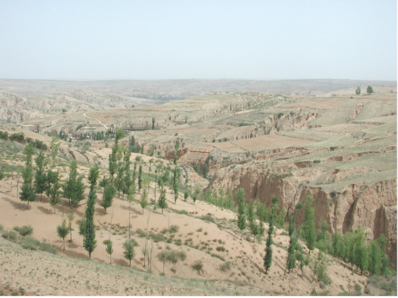 黄土高原水蚀风蚀带位于北纬35º20′—40º10′,东经103º33′—113º53′,海拔高度700-2955m,年降雨量250-450mm,风沙地貌和流水侵蚀地貌交错分布。水蚀风蚀交错带面积占黄土高原面积的28.56%。各种水蚀(片蚀、细沟侵蚀、切沟侵蚀、沟道侵蚀、洞穴侵蚀)和风蚀(吹蚀、扬蚀和风沙流动堆积)全年相互并存、交替进行。该区域土壤侵蚀严重,据估计风蚀模数可达7500-15000t/km2.a,水蚀模数为5000-10000 t/km2.a,植被稀疏、沙漠化严重,退化生态系统恢复困难。这一地区是我国防沙固沙、农牧交错带生态植被恢复以及煤气开发的重要区域。