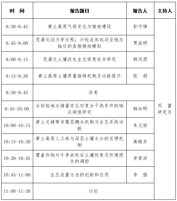12月8日9:10 大会报告 水保所东区科研楼二楼报告厅