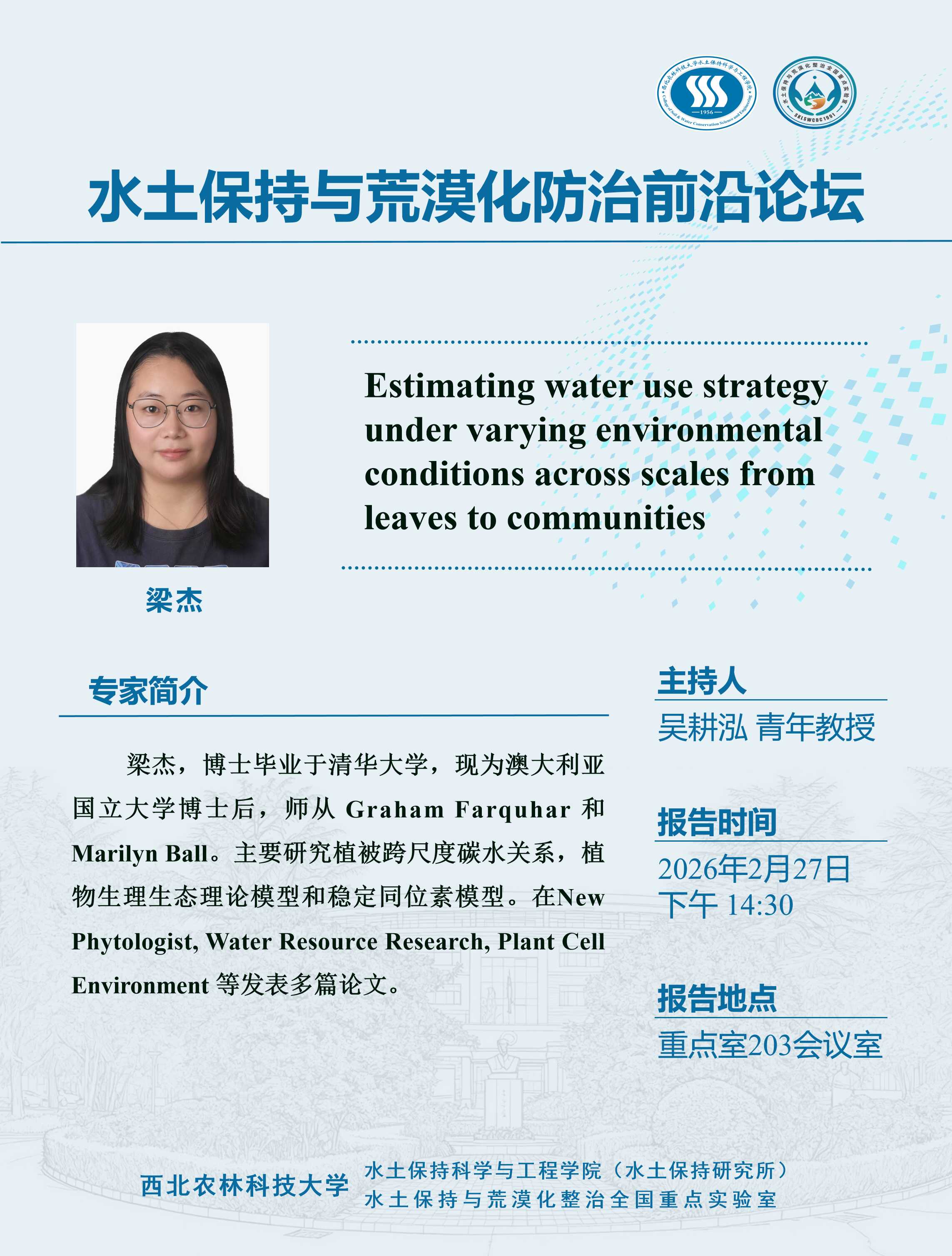 关于举办“Estimating water use strategy under varying environmental conditions across scales from leaves to communities”学术报告的通知