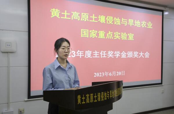 6月20日,黄土高原土壤侵蚀与旱地农业国家重点实验室举行主任奖学金颁奖仪式。参加会议的有水保所所长冯浩研究员,教授委员会主任上官周平研究员,邓西平研究员,以及实验室班子成员、获奖同学代表参加了仪式。仪式由副主任杨明义研究员主持。