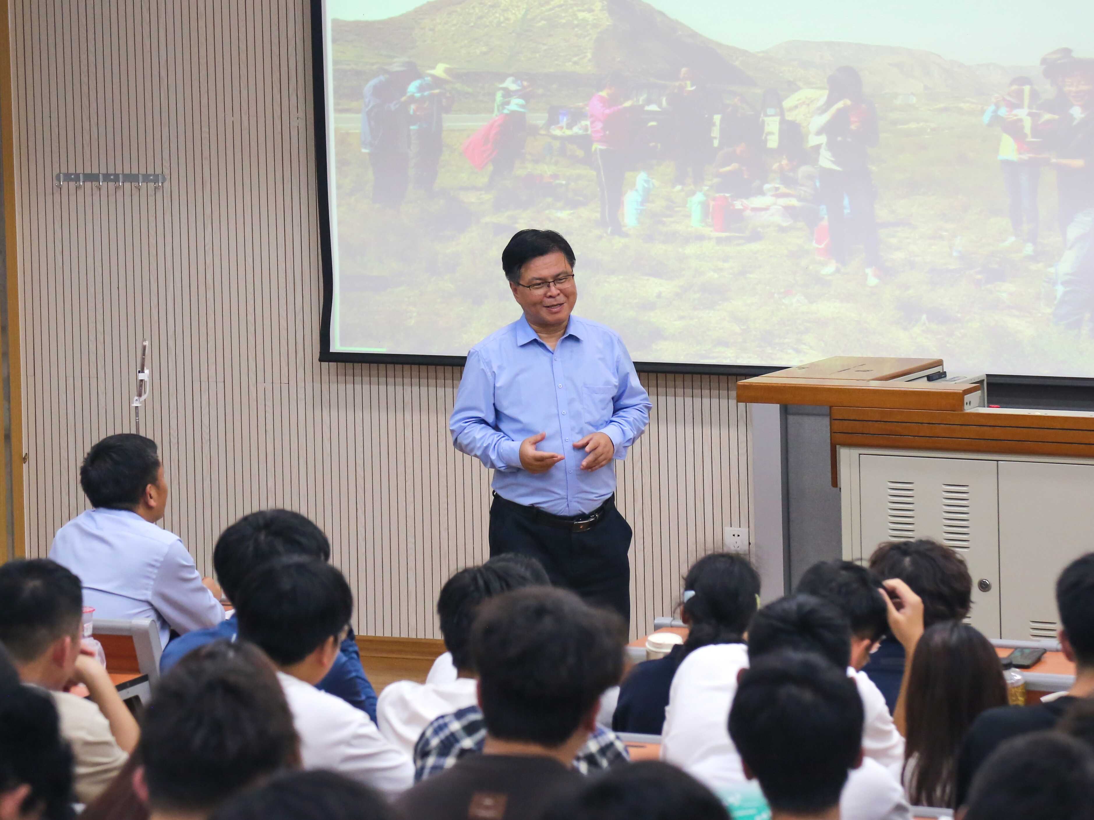 在以“不忘初心,扎根西部,用一生守护荒漠生态安全”的主题报告中,李新荣研究员以“老学长”的身份,从一张西农三号教学楼前的黑白照片讲起,娓娓道出他与沙漠长达三十八年的不解之缘。从初识沙漠的震撼,到扎根西北的抉择;从筚路蓝缕的坚守,到开拓创新的奋斗,他用朴实的语言深情回顾了潜心沙漠治理的科研岁月,将个人奋斗融入国家荒漠化防治的宏大叙事。这种面对面、心贴心的交流,让“科学家精神”化为可感可触的生动故事,帮助新生深刻认识到:真正的科研事业始于对国家命运的关切和对科学真理的热爱。