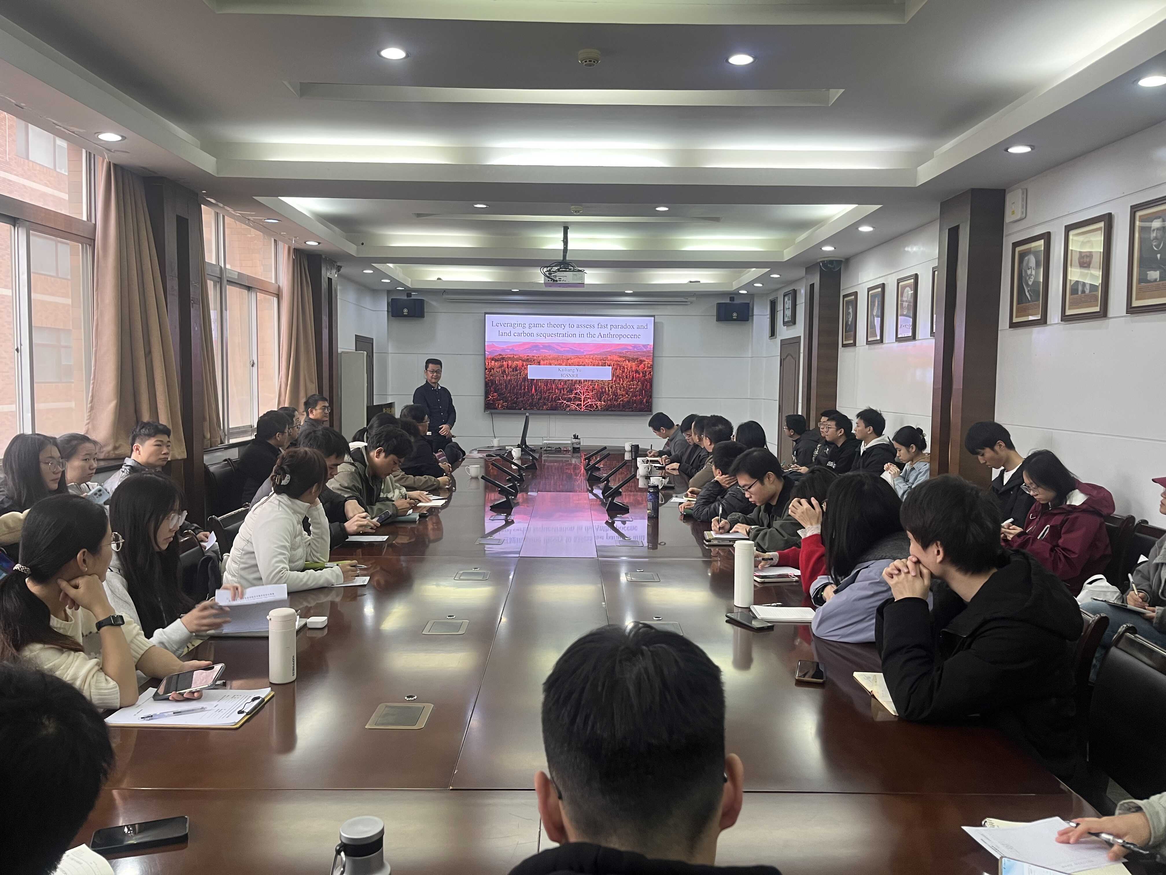 余开亮研究员以《Leveraging game theory to assess fast paradox and land carbon sequestration in the Anthropocene》为题,通过整合大尺度观测、模型模拟、理论构建和博弈论分析,系统性地阐释了森林碳汇能力受限的内在机理——“公地悲剧”。他指出,在资源有限的环境中,树木个体为追求自身利益而进行的资源竞争,最终通过加剧死亡反过来限制了整个森林生态系统的碳储存能力,这一机理揭示了生态系统内部个体与群体利益的根本性冲突,对准确预测全球碳循环以及实现“碳中和”目标提出了新的严峻挑战。